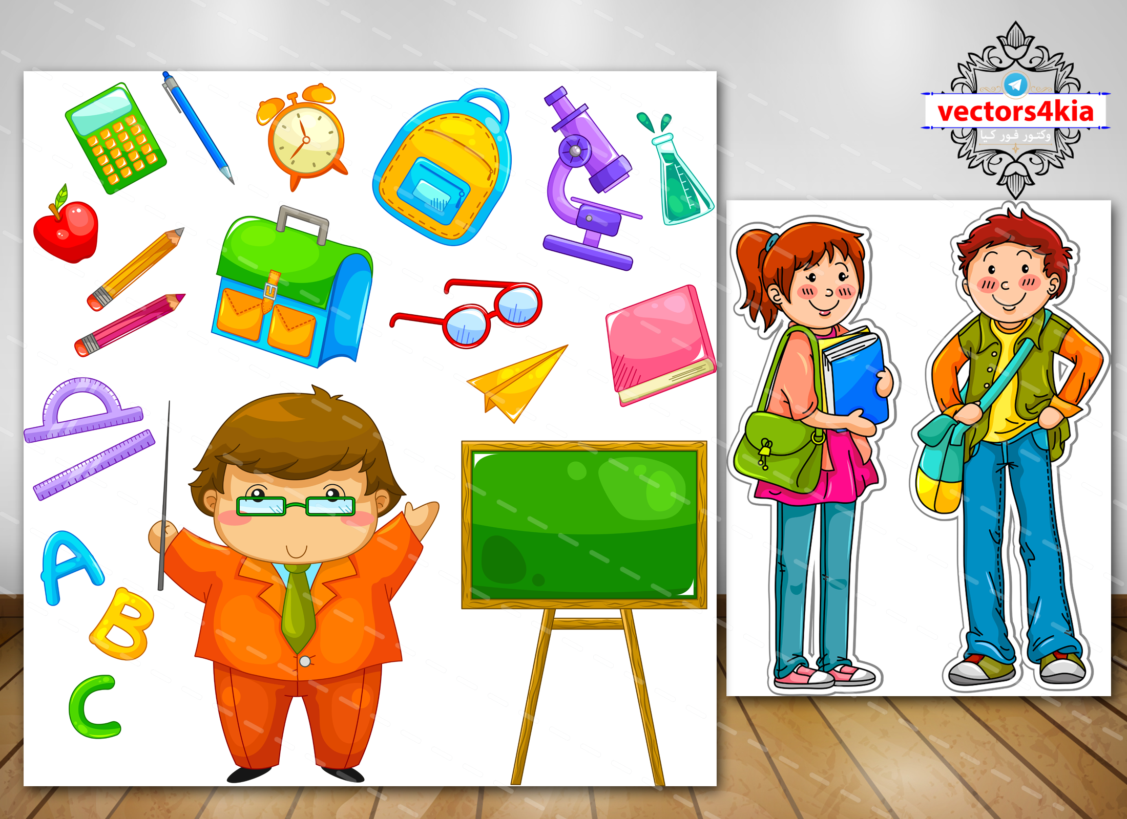 وکتور دانش آموز و معلم - با فرمت های - Ai-EPS-PNG-PSD