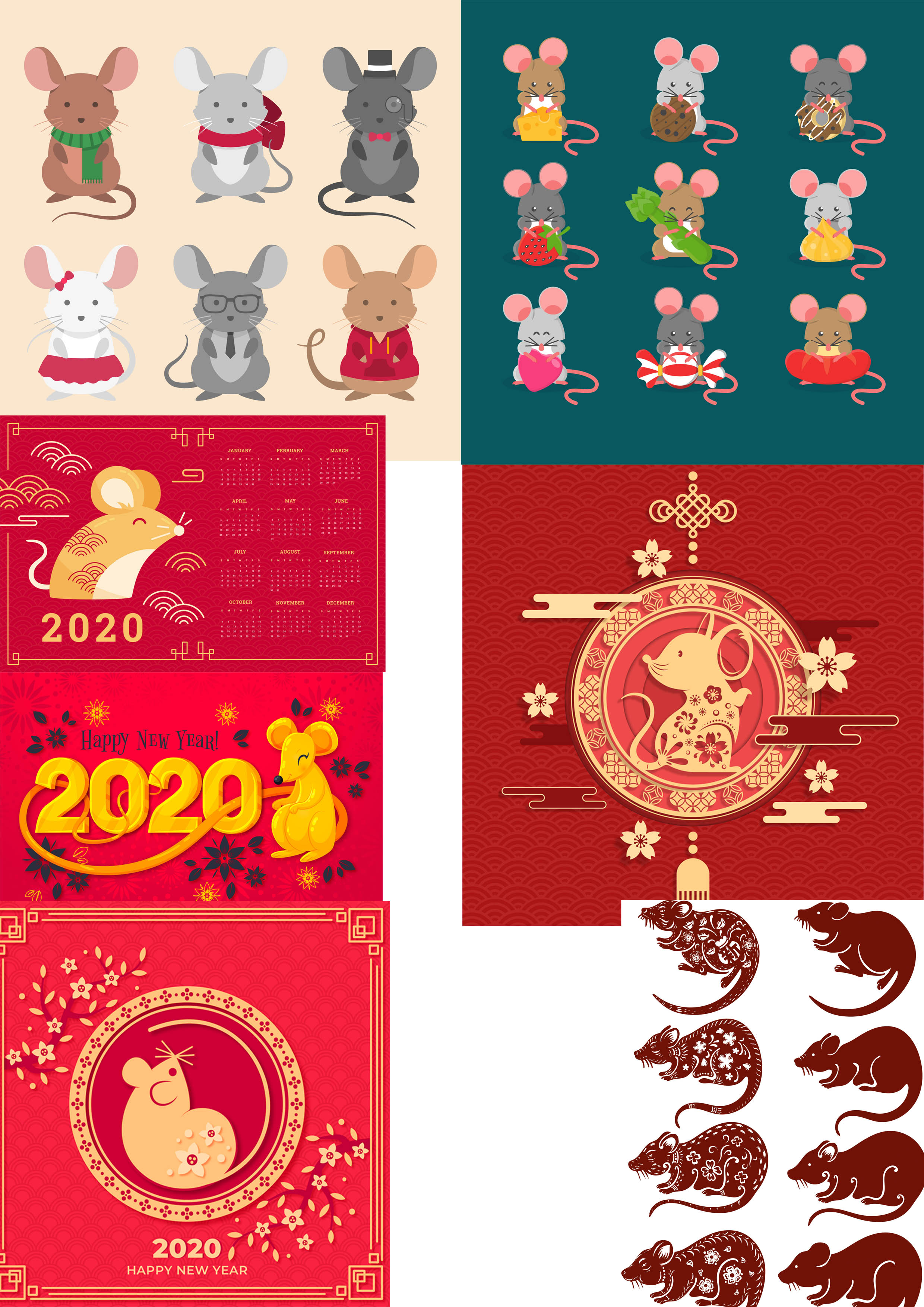 وکتور موش فانتزی سال نو (2) - با فرمت های Ai-EPS-PSD-PNG